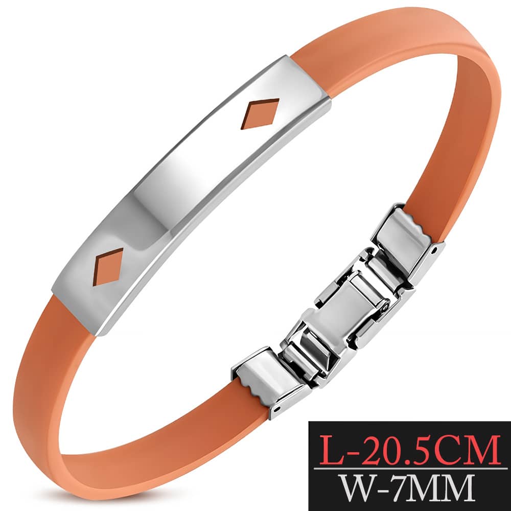 Narancs színű kaucsuk karkötő, kivágott nemesacél dísszel: