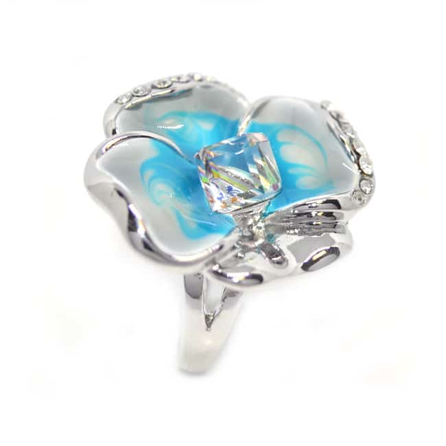 Kék árvácska kristályos gyűrű fehér arany színben: