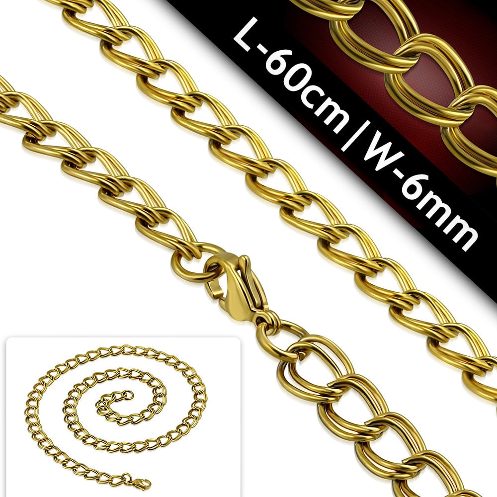 Két soros arany színű nemesacél nyaklánc 60 cm