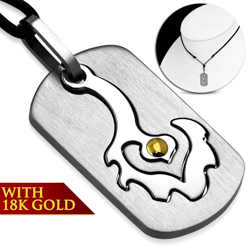 Ezüst - fekete, kétrészes nemesacél medállal, fonal lánccal
