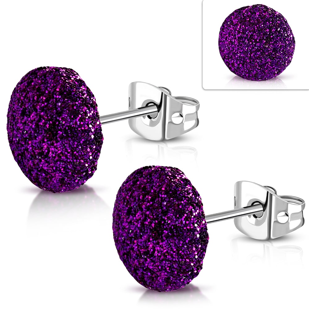 Kristályos csillogású, lila színű nemesacél fülbevaló
