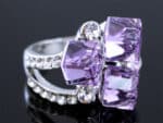 Lila kistályos dizájner gyűrű fehér arany színben