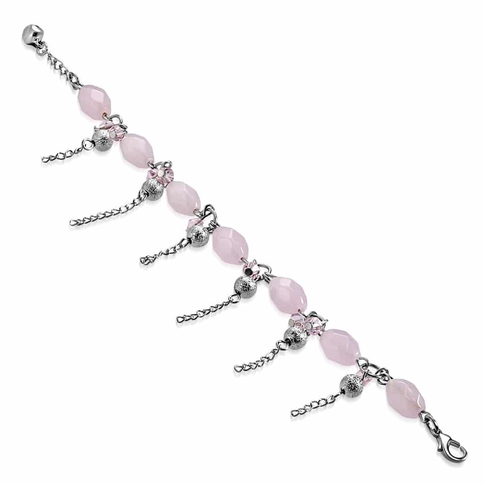 Lily – Ezüst színű, rózsaszín gyöngyökkel díszített nemesacél karkötő