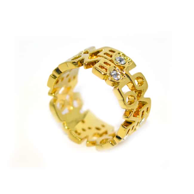 - LOVE feliratos gyűrű kristállyal, arany színű