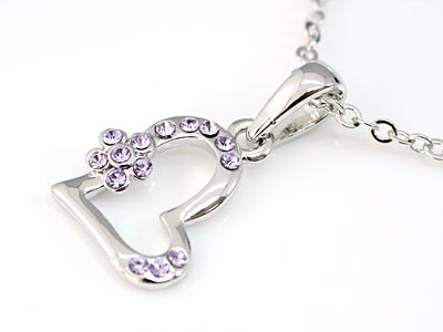 Love – kristályos nyaklánc szivecskés lila virágos medállal