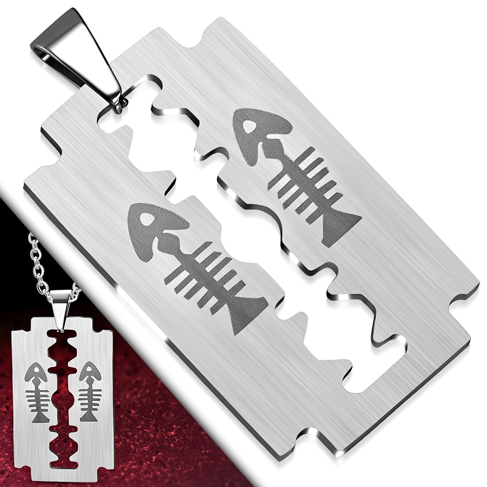 Ezüst színű halszálka motívumos penge nemesacél medál