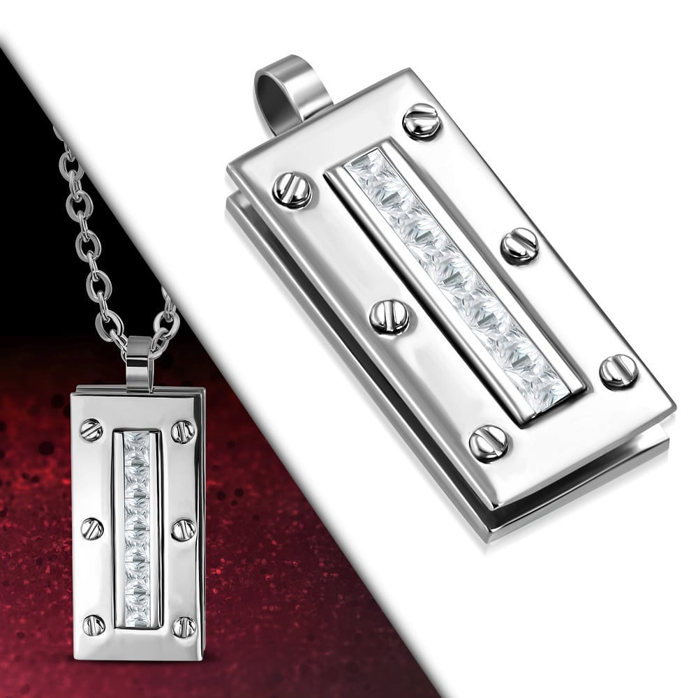 Hasáb alakú ezüst színű nemesacél medál szivárvány színű mintával