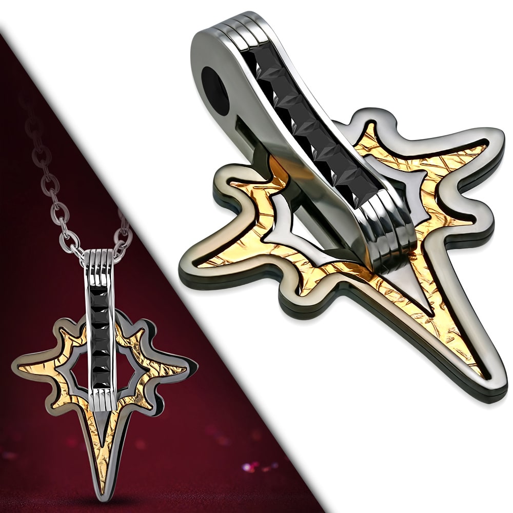 Fekete színű, nyolc szögletes nemesacél medál Yin-Yang mintával