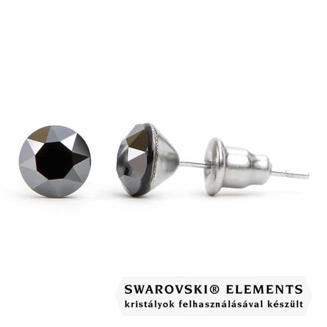Metal Swarovski kristályos fülbevaló – Jet Hematite színben ajándék díszdobozban