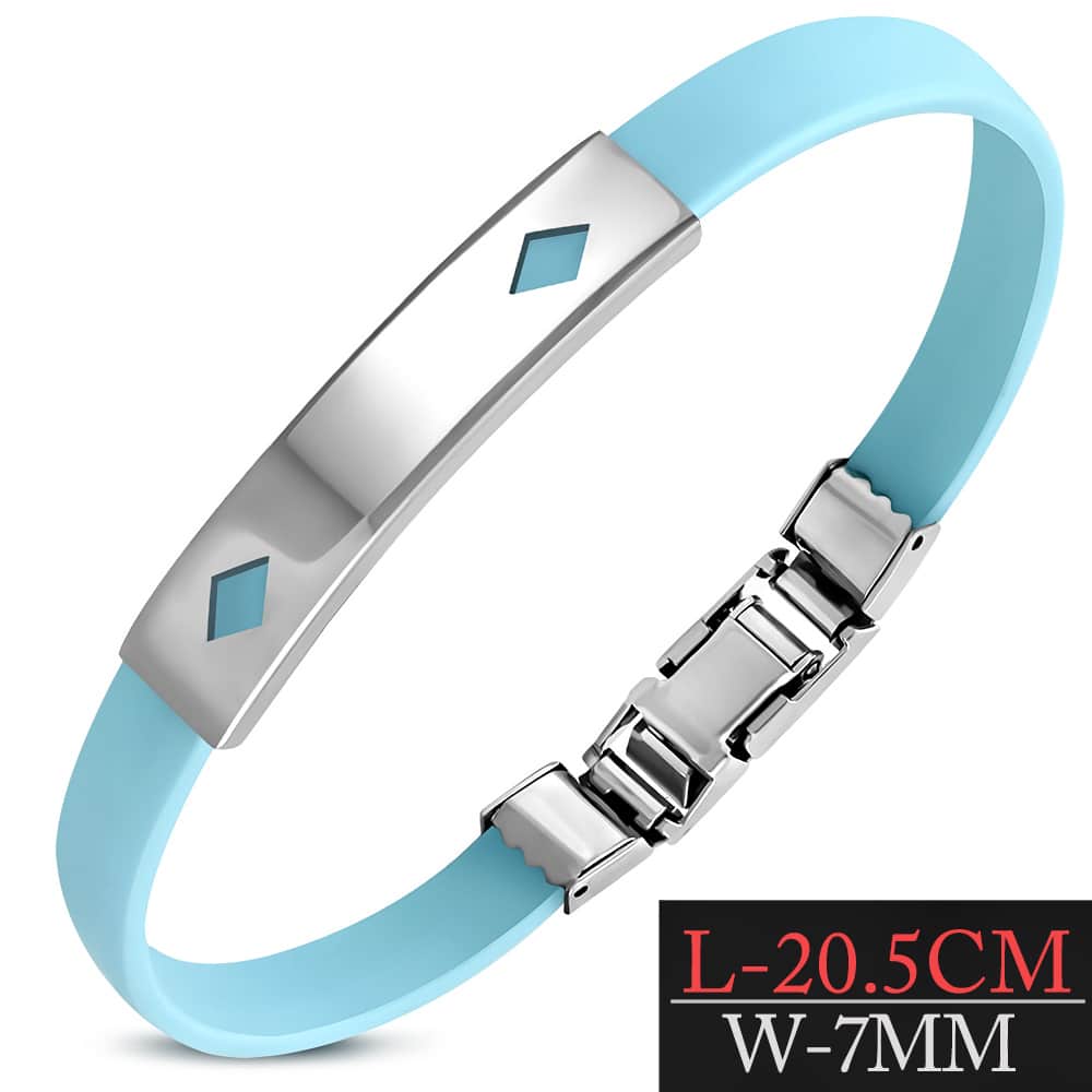 Sötét kék kaucsuk karkötő, kivágott nemesacél dísszel: