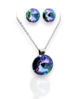 Az osztrák kristályokkal díszített ékszer szett lenyűgöző látványt nyújt. A színjátszós levendula árnyalatai tökéletes harmóniát alkotnak az innovatív nemesacél lánccal és a medállal.