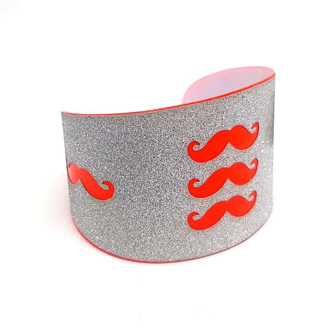 A Musta merev bizsu karkötő, egy ezüst színben csillogó bajusz mintás bizsu ékszer.