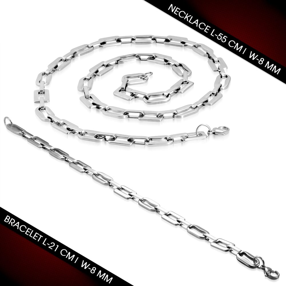 Nagy szemű, geometrikus stílusú nemesacél nyaklánc és karlánc szett