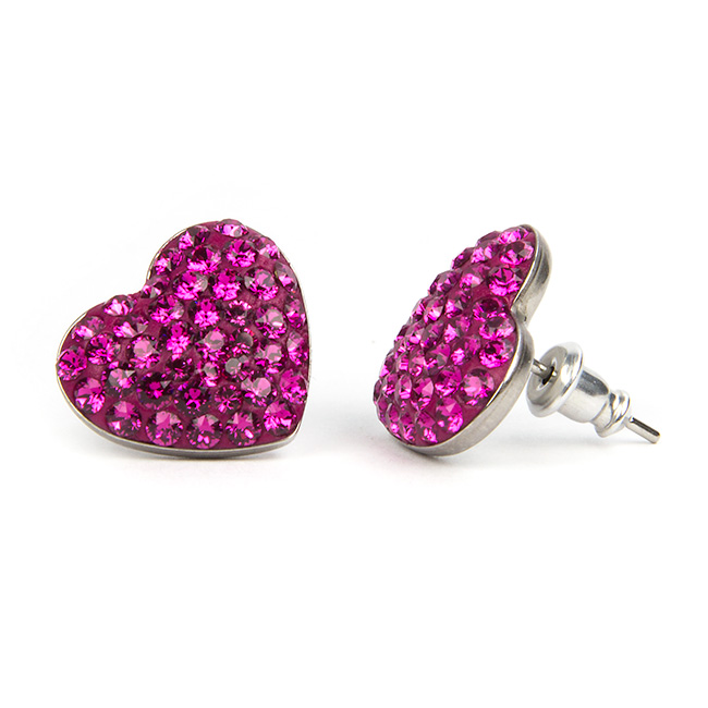 Nagy szives Swarovski kristályos nemesacél fülbevaló – Fuchsia