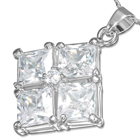 Négyszög alakú, cirkónia kristállyal ékesített divat nyaklánc