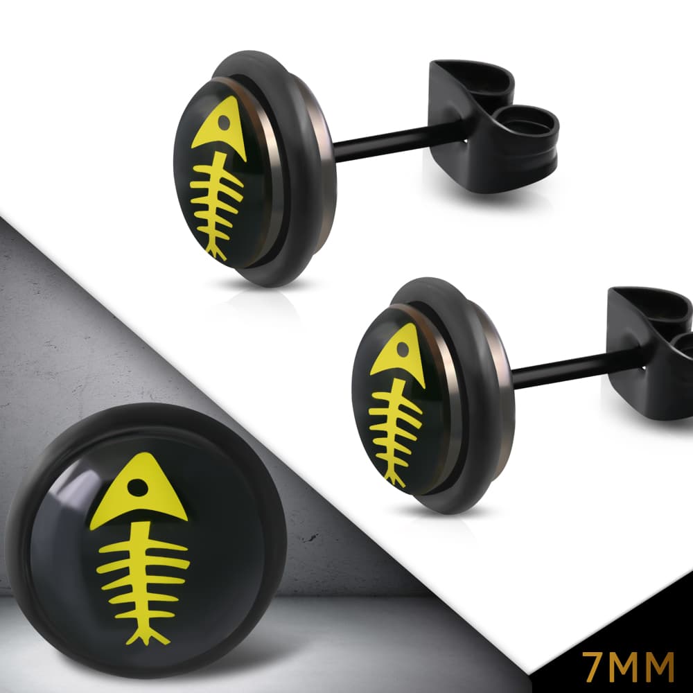Nemesacél fülbevaló, halcsont mintával