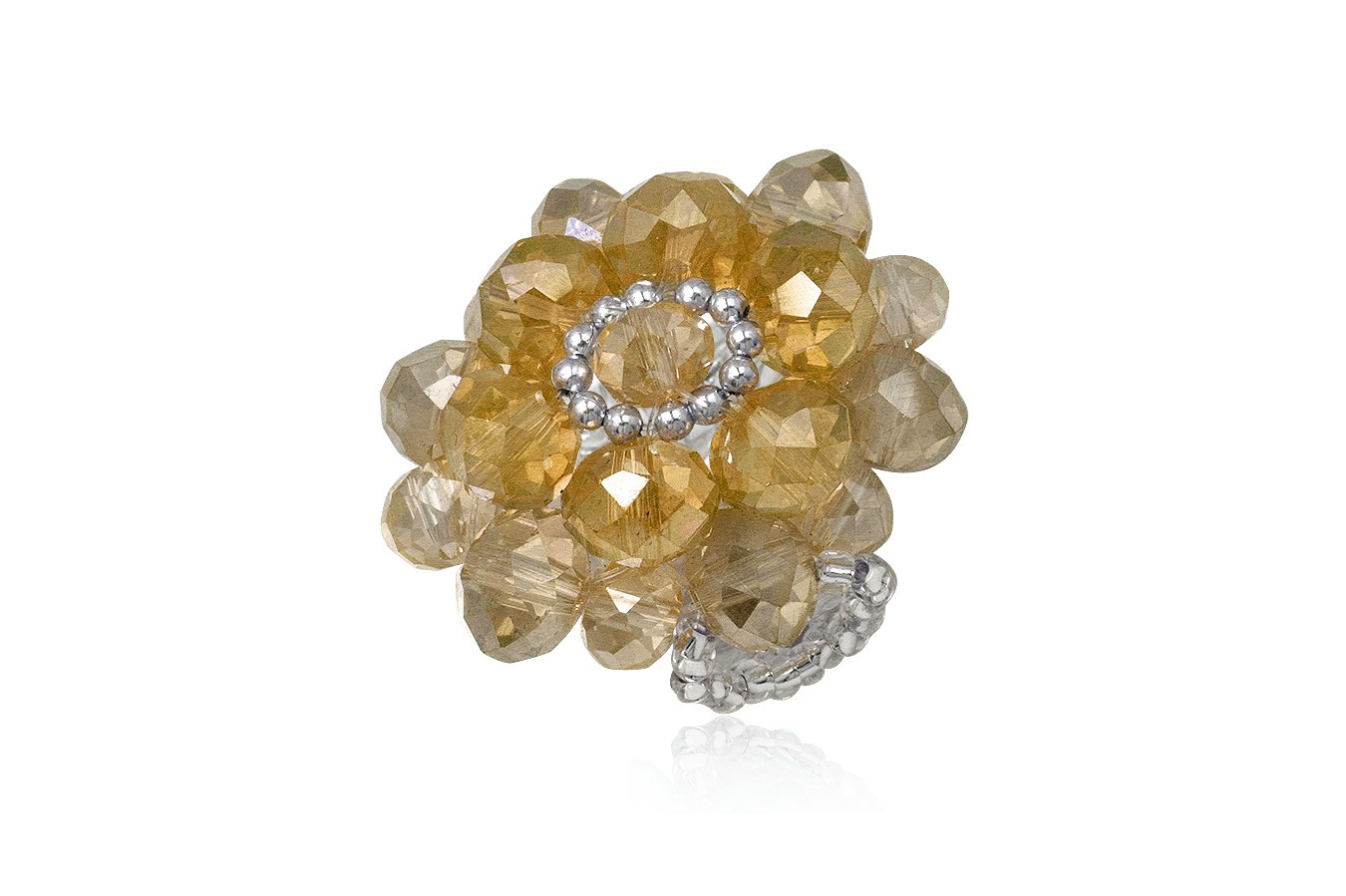 Virág alakú, gyöngyökből fűzött gyűrű