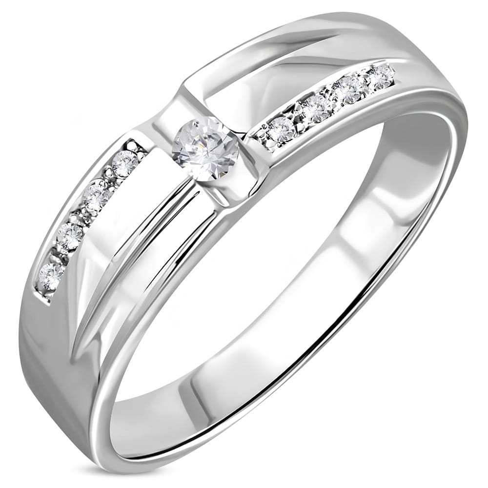 Ezüst színű széles nemesacél gyűrű cirkónia kristállyal