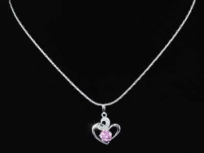 Nyaklánc kristályos rózsaszín köves szíves medállal