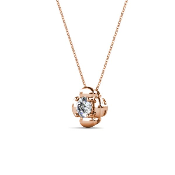 Clover 18K aranyozott nyaklánc medállal – Lóhere, Fehér köves, rózsaarany – Tilo