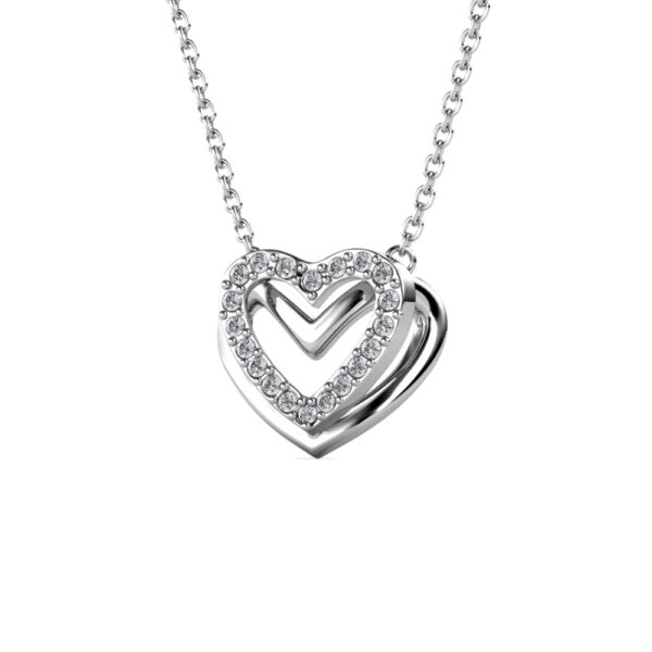 18K aranyozott szív nyaklánc – Medállal, fehér köves, fehérarany – Mavi