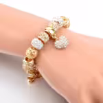 Pandora stílusú kristályos karkötő – Arany & Ezüst – Szives medállal