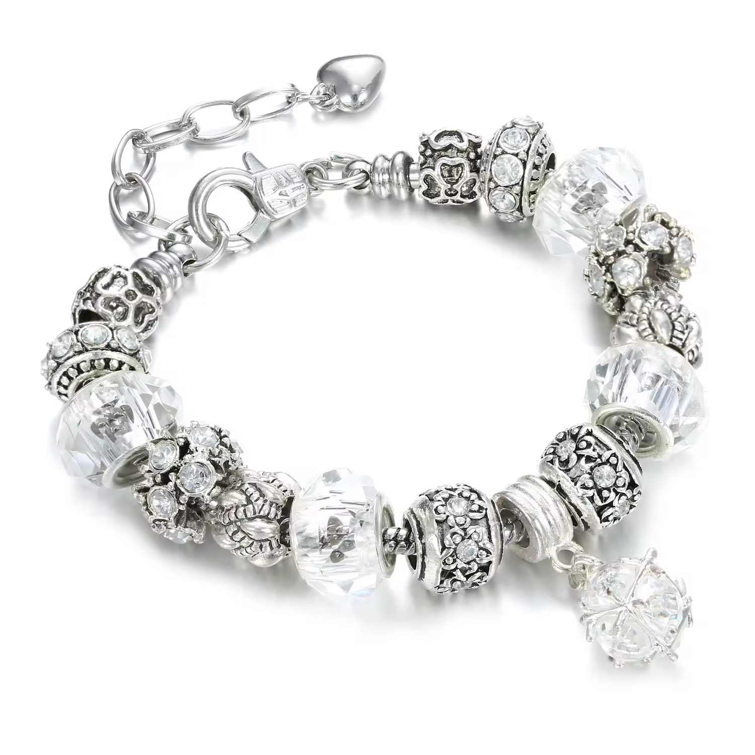 💎 Kristályok: A karkötőt díszítő Muranoi üveg kristály golyók, charmok átlátszó kristály színben pompáznak, amelyek azonnal magukra vonzzák a tekinteteket.