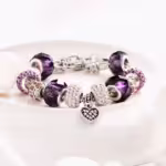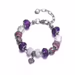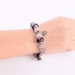 💎 Kristályok: A karkötőt díszítő Muranoi üveg kristály golyók, charmok lila színben pompáznak, amelyek azonnal magukra vonzzák a tekinteteket.