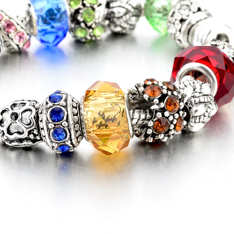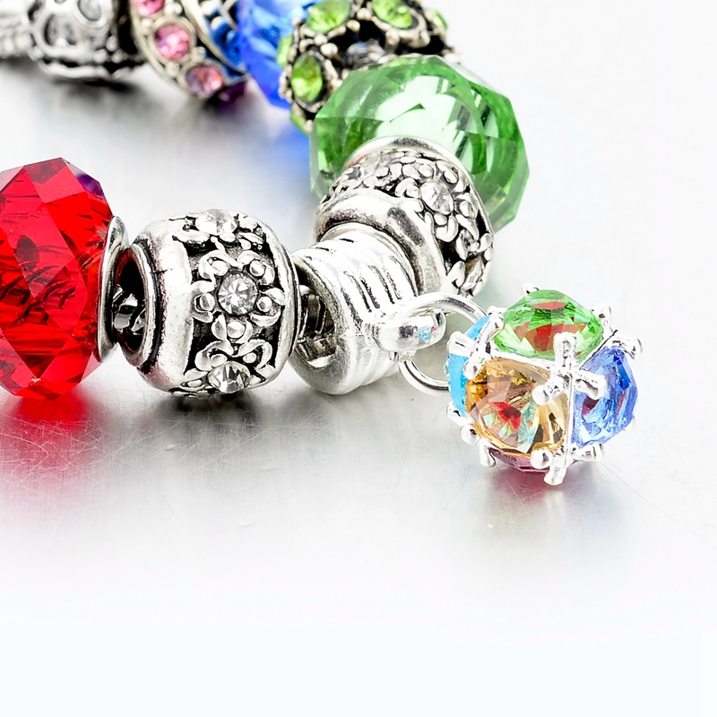💎 Muranoi üveg kristályok: A karkötőt díszítő Muranoi üveg kristály golyók és színes charmok piros, kék és arany színekben pompáznak, amelyek azonnal magukra vonzzák a tekinteteket.