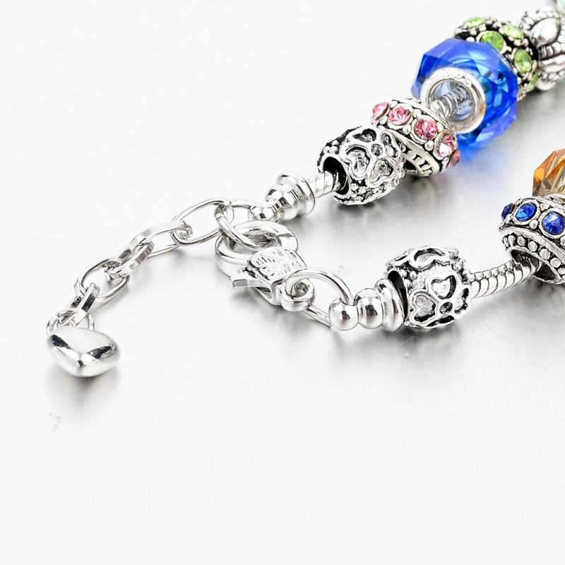 Emeld ki megjelenésedet ezzel a gyönyörű, Pandora stílusú kristályos karkötővel, amely minden outfitnek különleges ragyogást kölcsönöz. Ez a karkötő nemcsak a mindennapokra tökéletes, de különleges eseményekre is.