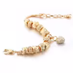 💎 Kristályok: A karkötőt díszítő Muranoi üveg kristály golyók, charmok sárga arany színben pompáznak, amelyek azonnal magukra vonzzák a tekinteteket.