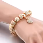 Pandora stílusú kristályos karkötő – Sárga arany – szives medállal