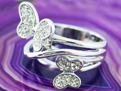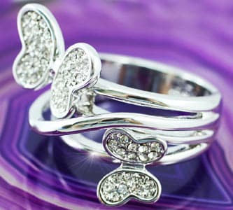 Pillangós kristályos gyűrű fehér arany színű bevonattal