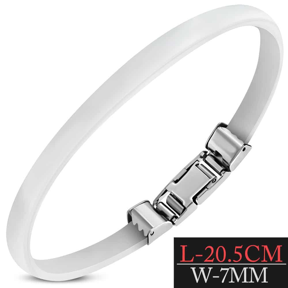 - Alapanyag: Kiváló minőségű kaucsuk, nemesacél kapoccsal – tökéletes választás érzékeny bőrűek számára is, hiszen bőrbarát és kényelmes viselet.
