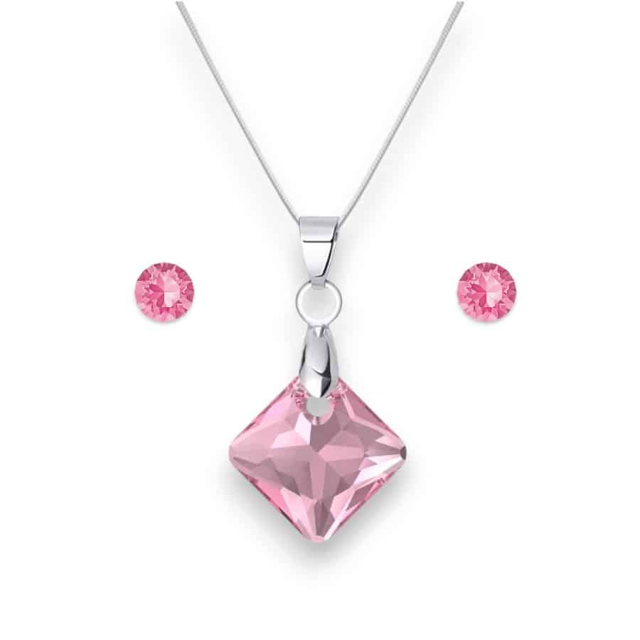 Rombusz Swarovski kristályos nemesacél szett – Rose – ajándék díszdobozban