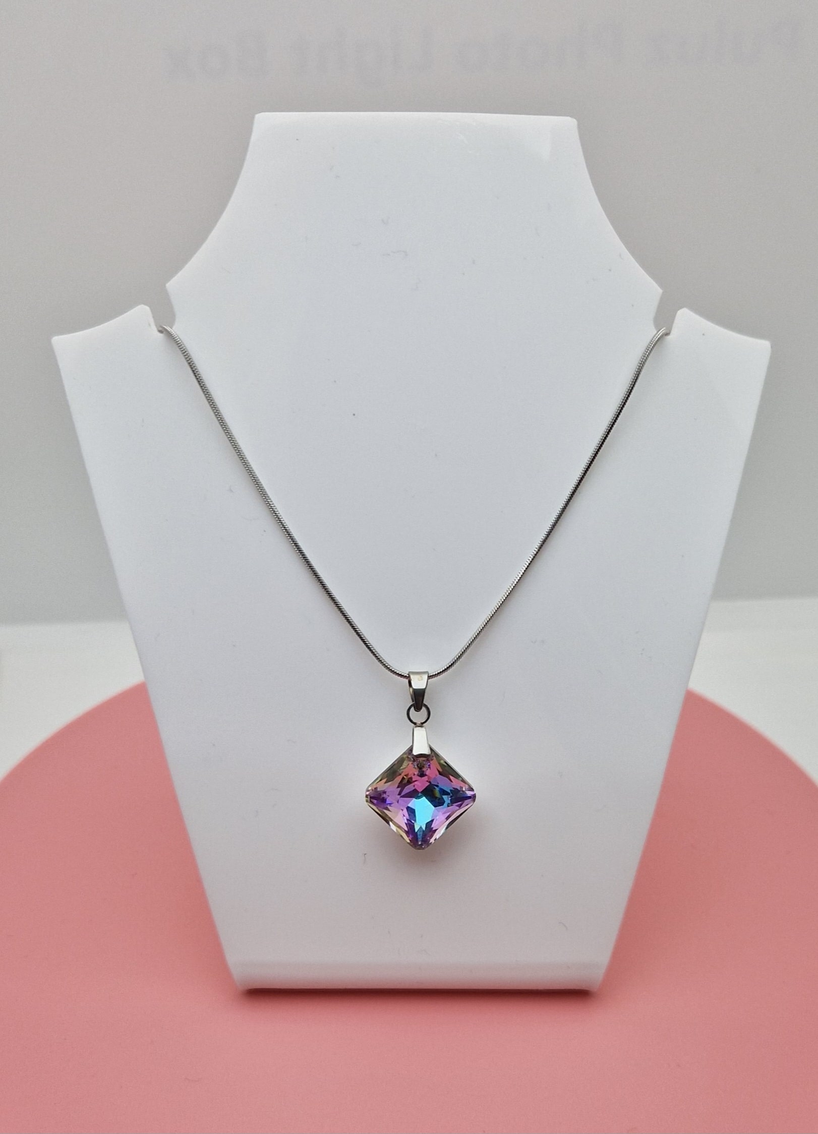 Fedezd fel a gyönyörű, kézzel készített swarovski kristályos nemesacél ékszer szettet. A szett tartalma egy nemesacél fülbevaló és nyaklánc, mely egy csillogó 16 mm-es rombusz swarovski kristályos medált rejt. Díszdoboz jár hozzá ajándékba.