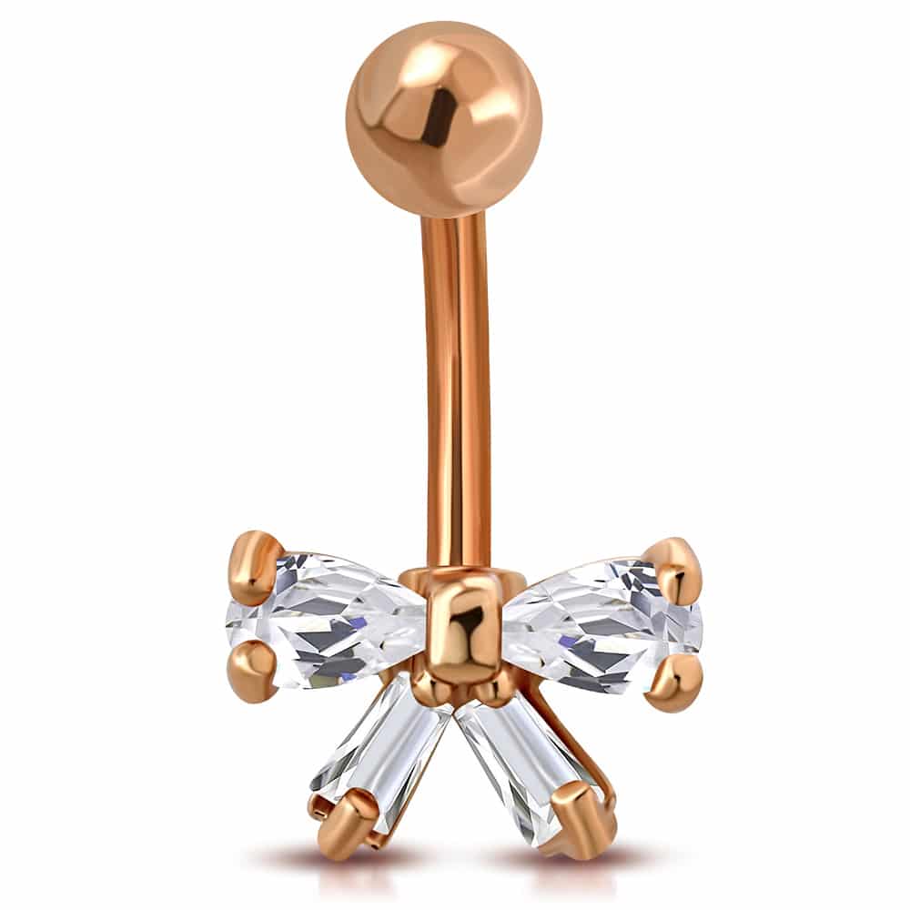 Rózsa arany színű, masni formájú nemesacél piercing cirkónia kristállyal