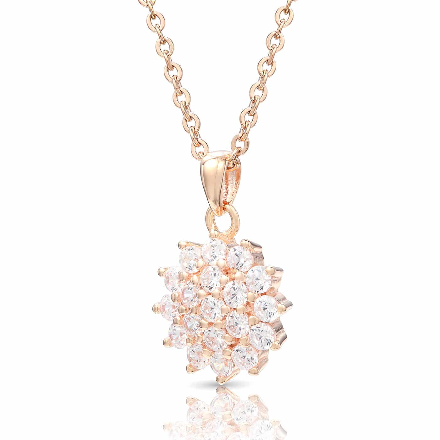 Rózsaarany nyaklánc cirkónia kristályos virág medállal ajándék díszdobozban