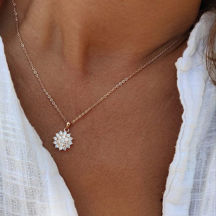 💎 Kristályok: A nyaklánc ragyogó fehér cirkónia kristályokkal van díszítve, amelyek bámulatos fényt és eleganciát kölcsönöznek minden egyes alkalomhoz.