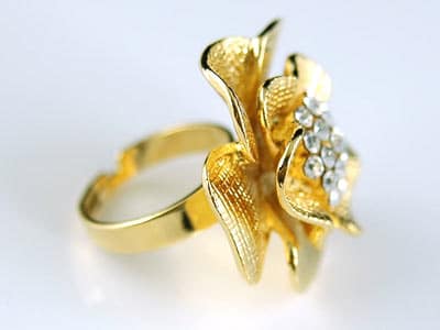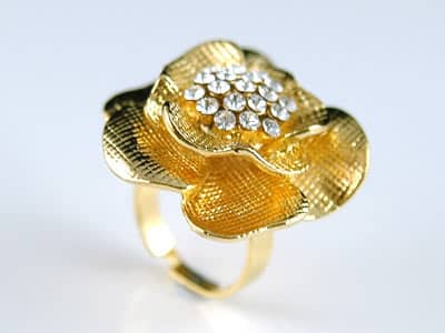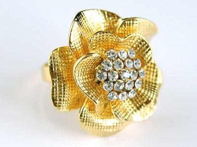 - A nagy virág mérete 3,5 cm x 3,5 cm. A gyűrűben osztrák kristályok találhatók.