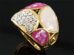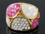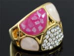 Rózsaszín kristályos dizájner gyűrű arany színben: