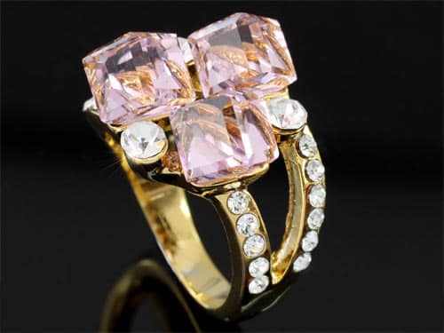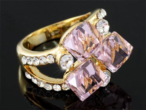 Rózsaszín kristályos dizájner gyűrű arany színben