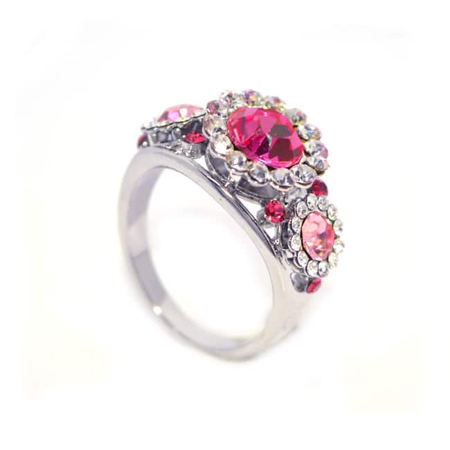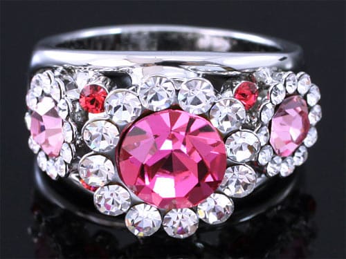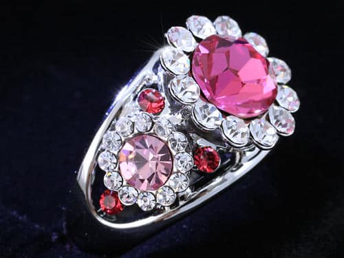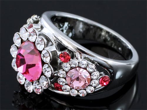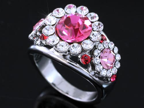 Rózsaszín kristályos gyűrű fehér arany színben: