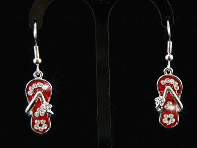 Piros papucs alakú kristályos fülbevaló ajándék díszdobozban