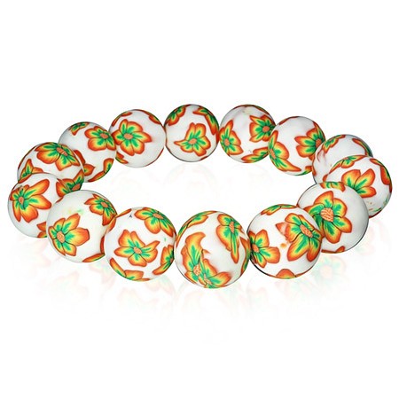 Divatos zöld-piros virág mintás gyöngyös bizsu karkötő