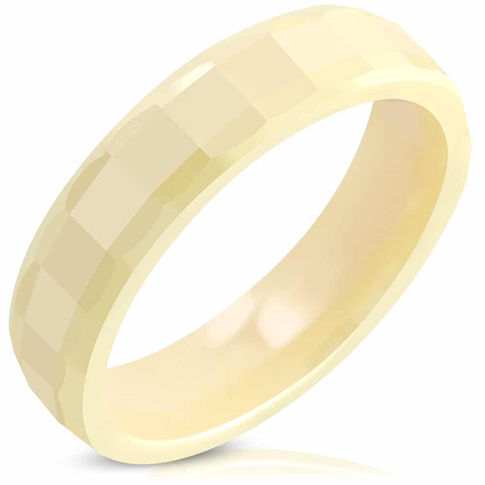 Sárga színű kerámia gyűrű, négyszögre csiszolt mintával