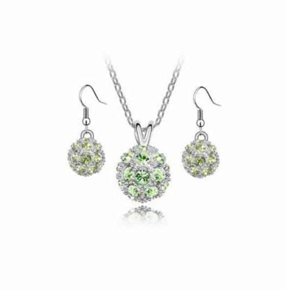 A szett tartalma egy pár zöld fülbevaló és egy zöld medállal díszített nyaklánc.