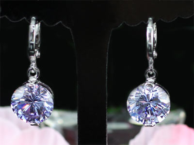 A fülbevaló lenyűgöző lila CZ cirkónia kristályokból (szimulált gyémánt) készült, melyek ragyogó fényt és csillogást hoznak létre. A 2.5 karátos kristályok áttetsző lila színe minden tekintetet magára von.