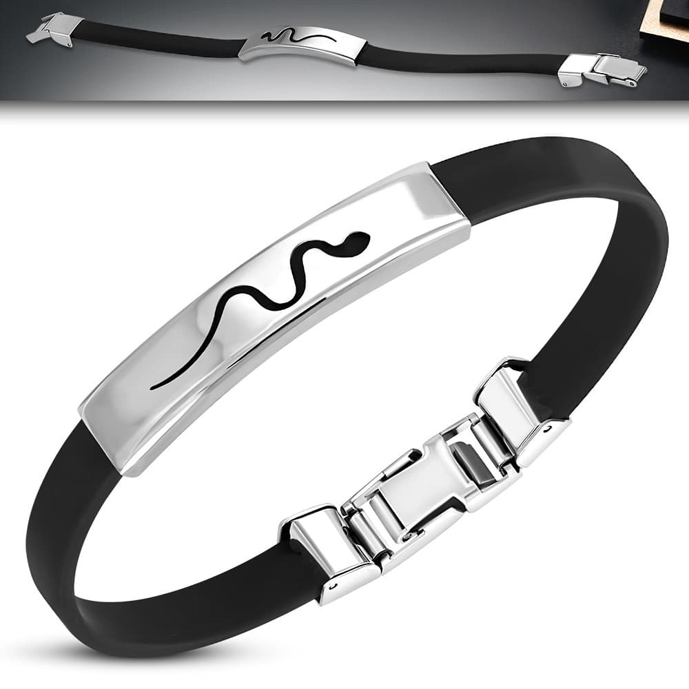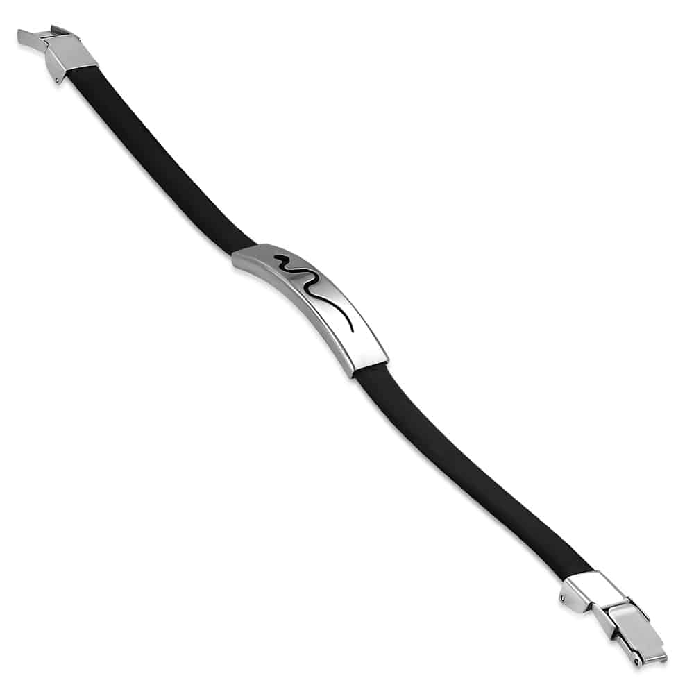 Ezüst színű nemesacél karlánc ékszer, kaucsuk dísszel