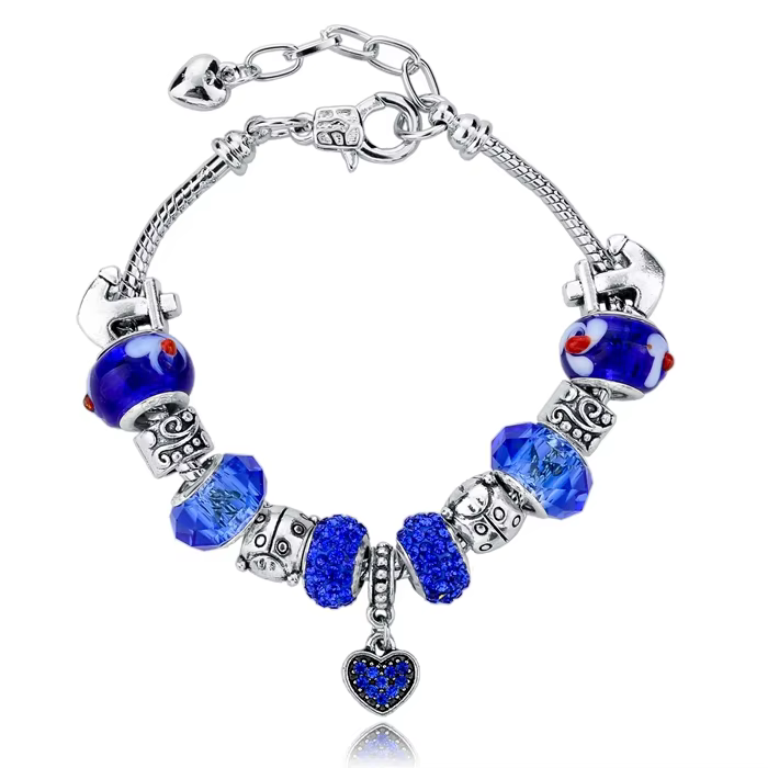 Sötét kék Pandora stílusú kristályos karkötő